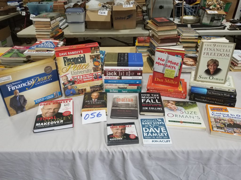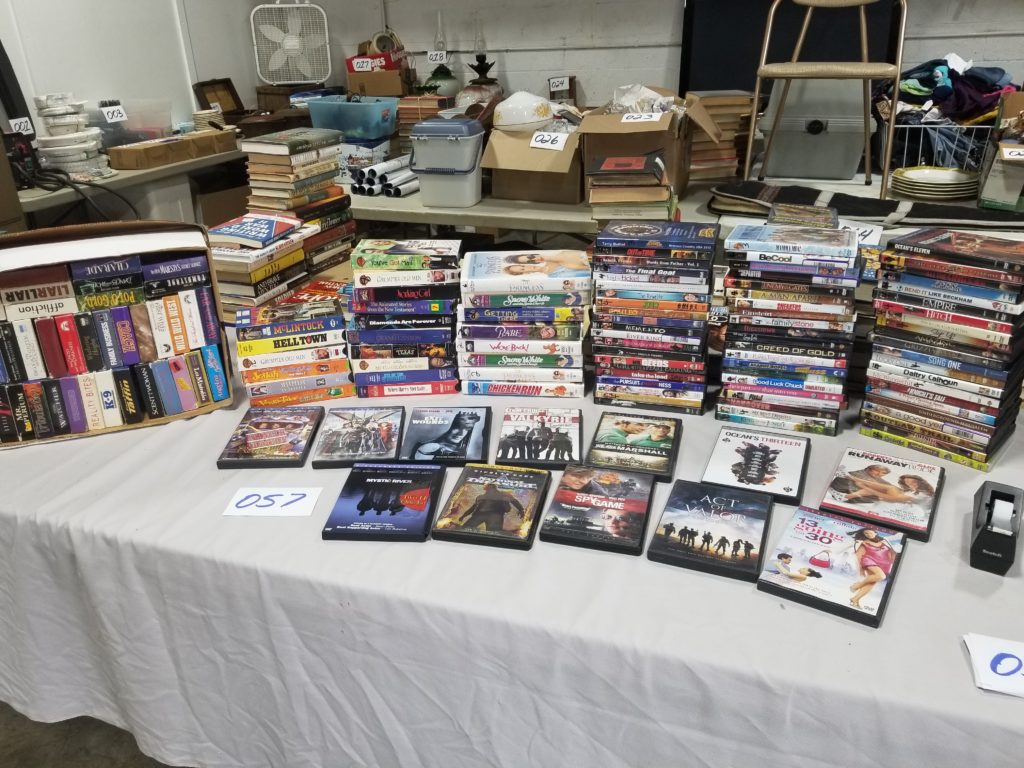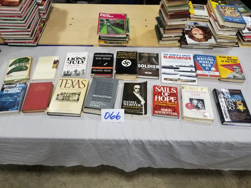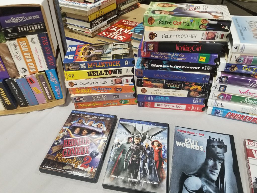 We have a variety of items including books, collectibles, clothes,