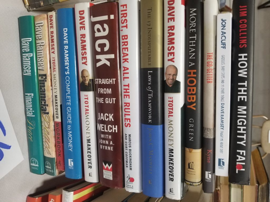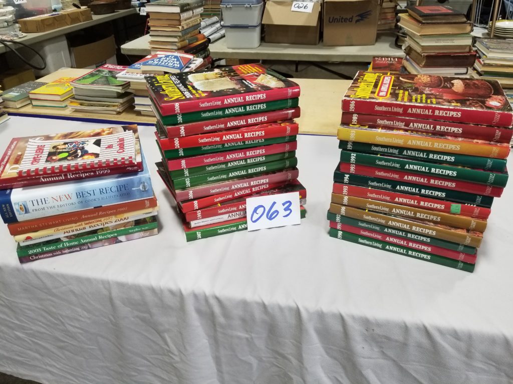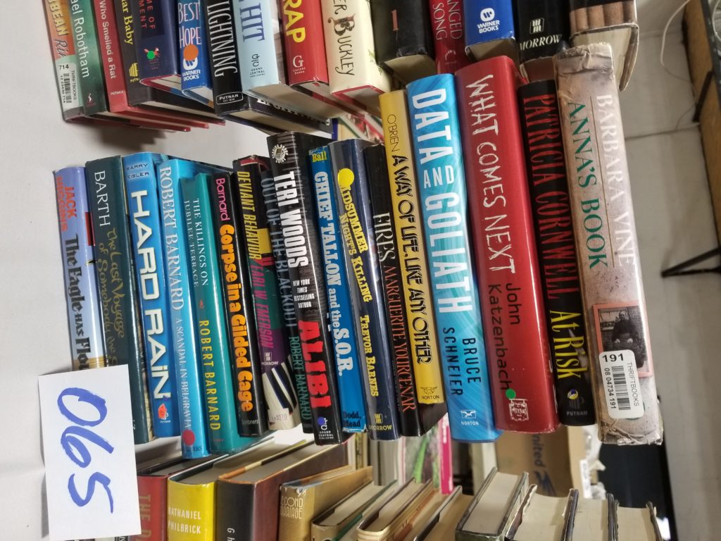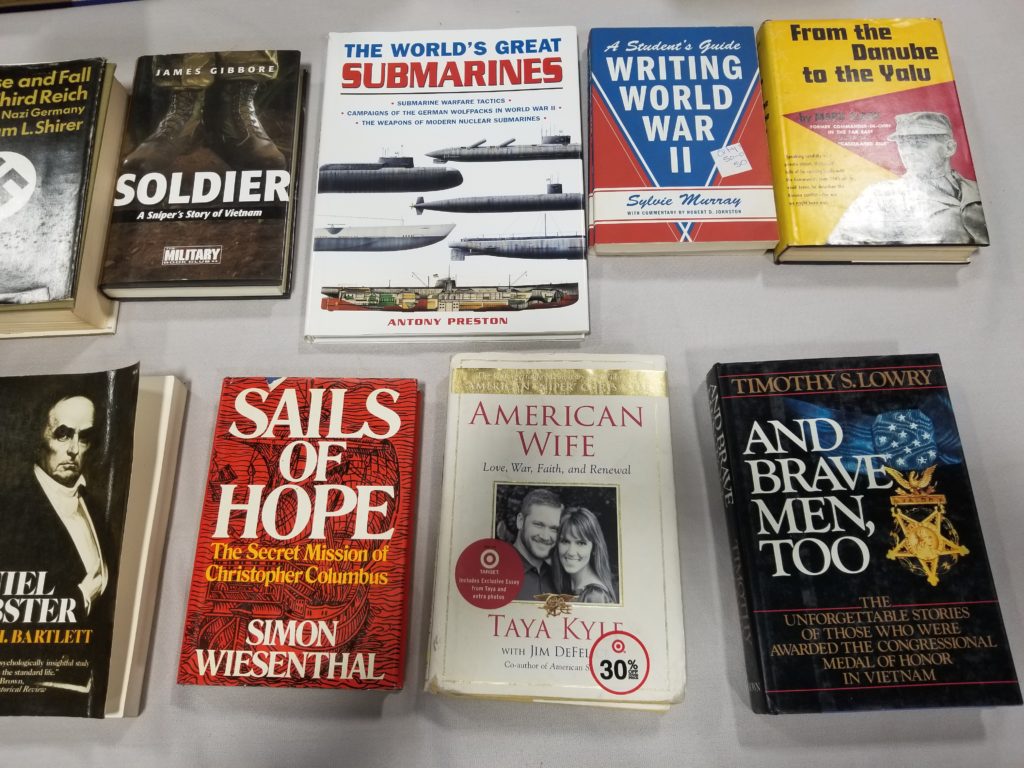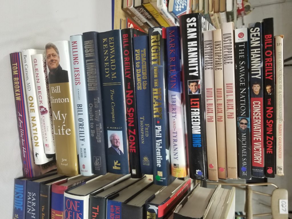 We have a variety of items including books, collectibles, clothes,