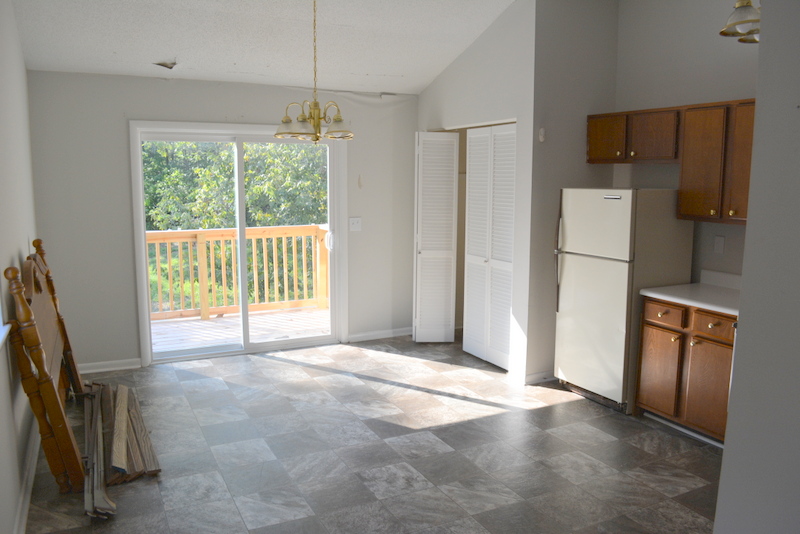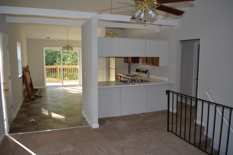 Real Estate Bid Online or Onsite: This 2 bedroom home has a living room with fireplace, eat-In kitchen with appliances and laundry closet, central heat and air, and a new deck overlooking the back yard. Downstairs there is a full basement with a garage door.
