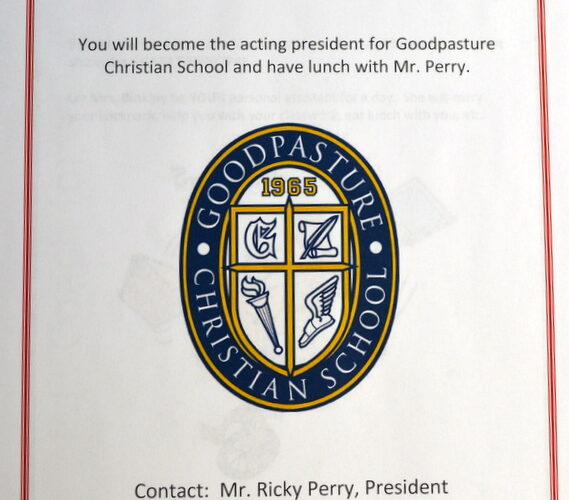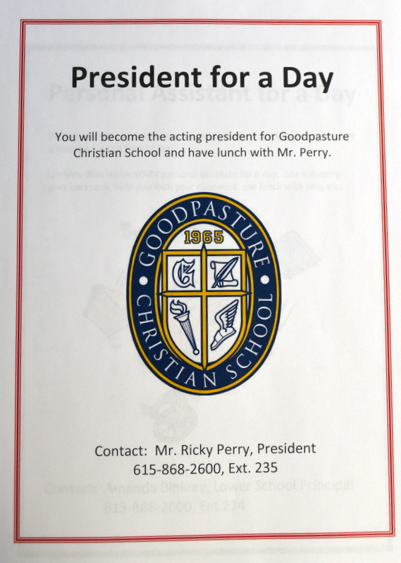 Goodpasture Parent, and Students here is your Opportunity to be First in Line….Principal…P.E. Coach or spend all Day in School in Your Sweat’s For Goodpasture School Faculty, Students and Parents…Call or Email James Dillard with any questions 615-852-0356 jdillard@goodpasture.org