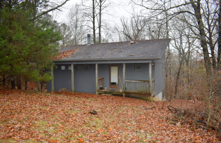 This home is on 2.5 wooded acres with 610 ft. road frontage. It has a living room/dining room with fireplace and built in bookcase, kitchen with walk-in pantry, 1-bedroom, full bath, and lots of windows for natural light. Downstairs has a concrete floor, large family or game room with fireplace, and a 1-car garage.