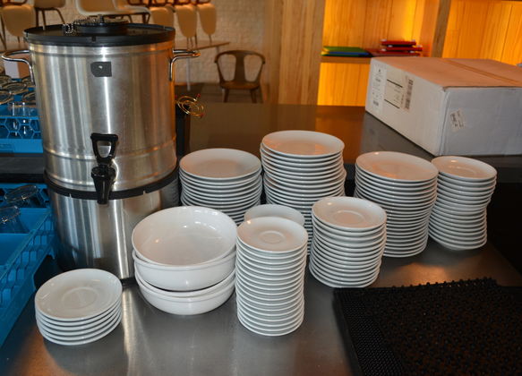 Partial List of Equipment: Turbo air Deluxe Freezer, Kolpak 6 x 12 walk-in freezer, True under counter coolers, Hoshizaki Ice machine, SS tables, Metro C5 holding cabinet, Vivitek projector and screen,Alto-Shaam rotisserie, Garland oven w 6 burner range, True under counter fridge, Revel POS system w/ I pad, True 3 door cooler, US range 36” grill, Turbo Air under counter 2 door refrigerator, Classic APW counter top food warmer, Waring Elec. griddle, Nemco toaster, single SS sink w/ sprayer, 3 compartment SS sink w/ sprayer, 3 compartment SS sink, SS wall shelves, racks, Pitco fryer, True 3door back bar cooler, Procter Silas rice cooker, ss.racks, tables, dishes, flatware, ss inserts, warming lamps, KitchenAid mixer, Avantco slicer, Waring hand mixer, 3 MultiPRO cash register drawers, 28 wicker chairs, (6) 8’ tables, 14 Danish bar stools, (4) 32’ square tables, (4) 32’ round tables, 4 aluminum stools, 16 wood arm chairs, waste cans, Fujitsu IX 500 printer, bread rack, 28 plastic chairs, etc.