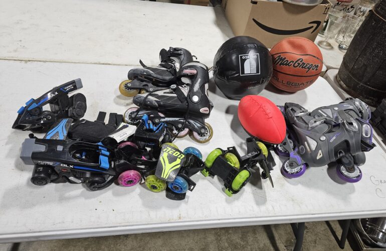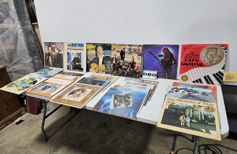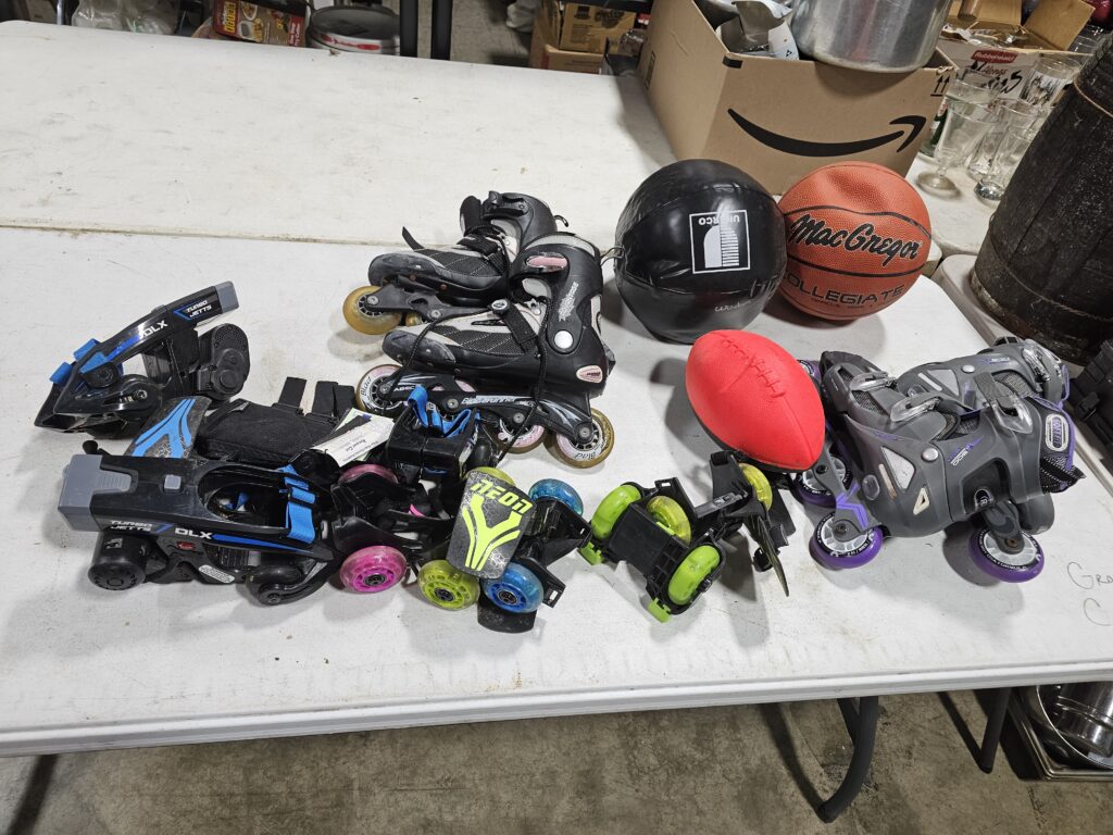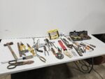 Cast Iron Cookware, Tools, Power tools, Saws, drills, pool cue, flag, glassware, kitchen items, baseball cards, Beer Stiens, Liquor glasses, black powder, toys, figurines, DVDs, restaurant racks, old knives, artwork, albums, decorative items, vintage razors, collectibles, small appliances, collectible comic books, Trolling Motor, AVON collectibles, 20ft Extension Ladder, books, silverware, furniture, electronics, vases and MORE !!!