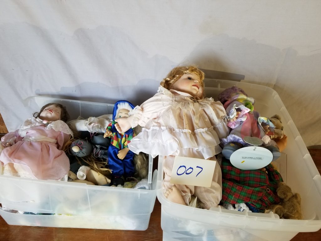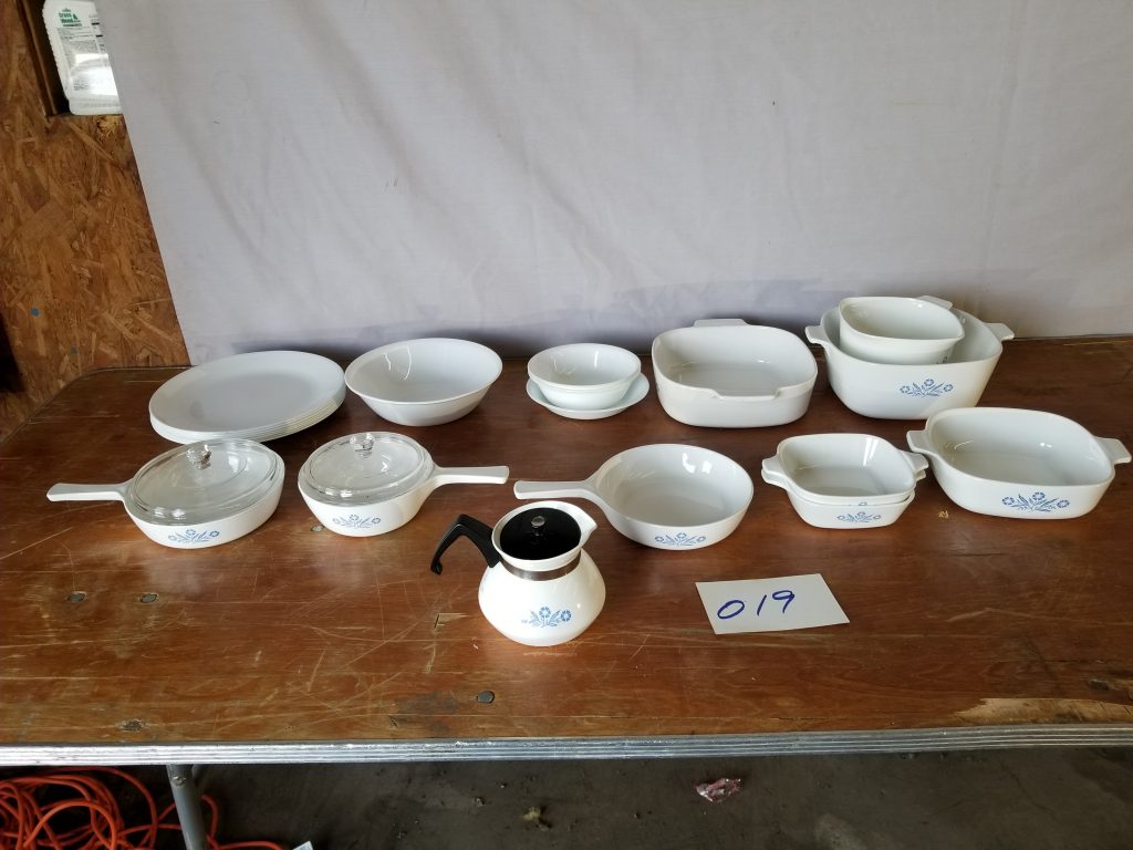 Includes furniture, tools, collectibles, fenton, cast iron skillet, glassware, collectible dolls, media, Corelle and Corning ware, and more lots being added on Monday and Tuesday – keep watching
